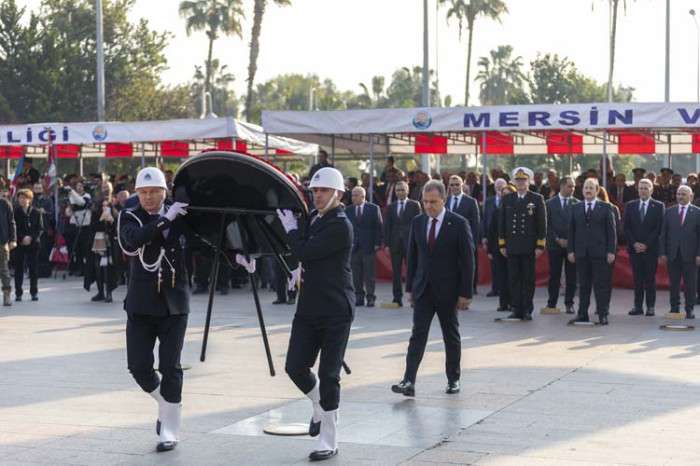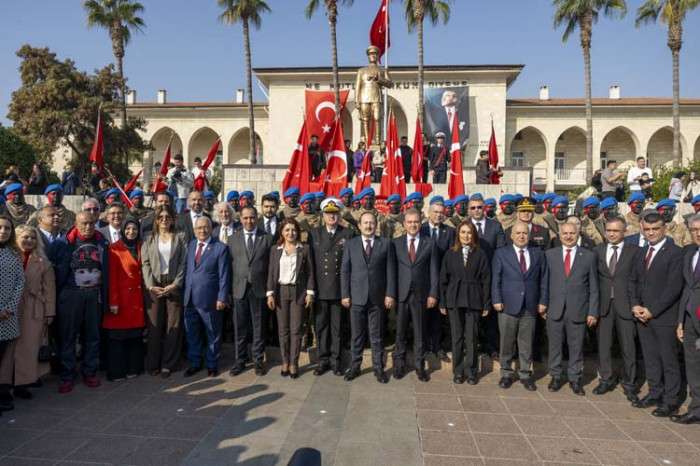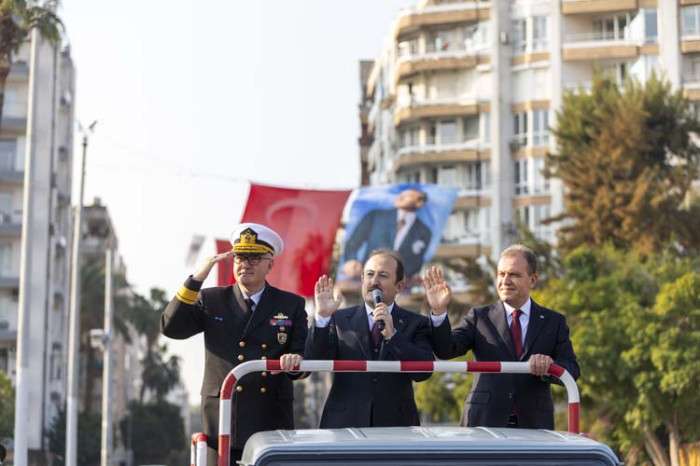 Saygı duruşu ve İstiklâl Marşı’nın ardından ise Mersin Valisi Ali Hamza Pehlivan, Akdeniz Bölge ve Garnizon Komutanı Tuğamiral Murat Fırat ve Mersin Büyükşehir Belediye Başkanı Vahap Seçer, törene katılanların ve halkın Kurtuluş Günü’nü kutladı. Programda; bir öğrenci tarafından şiir okunmasının ardından, Akdeniz Bölge ve Garnizon Komutanlığı’ndan bir subay tarafından da günün anlam ve önemini belirten konuşma yapıldı.