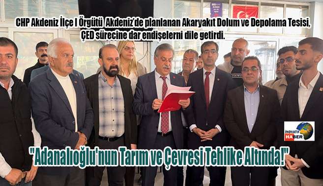 Cumhuriyet Halk Partisi Akdeniz İlçe l Örgütü, Mersin Akdeniz İlçesi sınırları içerisinde planlanan Akaryakıt Dolum ve Depolama Tesisi, Boru Hattı Kapasite Artışı ve Dolfen/Platform Yapım Projesi ile ilgili başlatılan Çevresel Etki Değerlendirme (ÇED) sürecine dair endişelerini kamuoyuyla paylaştı.
