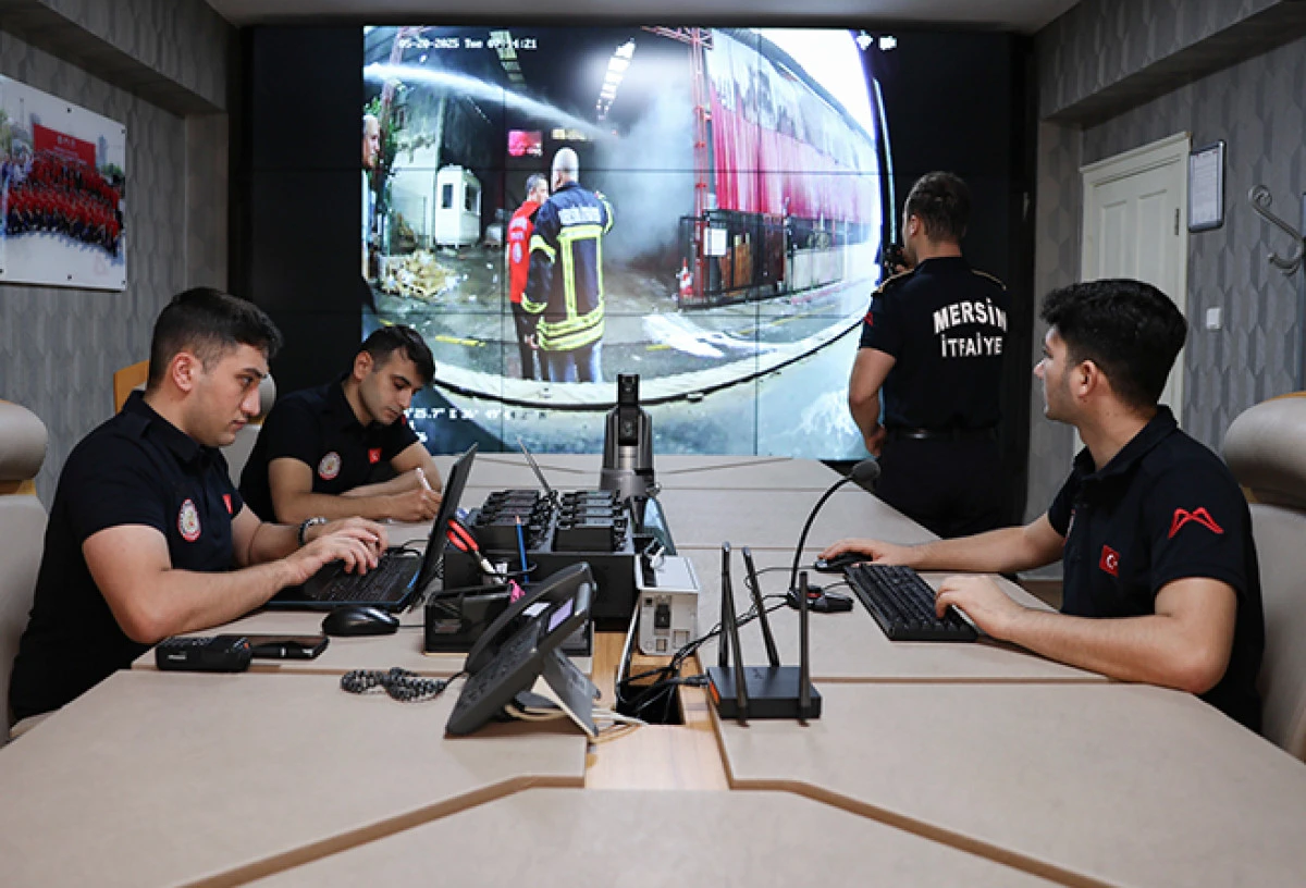 Mersin Büyükşehir Belediyesi İtfaiye Dairesi Başkanlığı Müdahale ve Koordinasyon Şube Müdürlüğü'ne bağlı olarak faaliyet gösteren Afet ve Koordinasyon Amirliği (AKOM), ‘uzaktan izleme sistemi’ ile farklı bölgelerdeki yangın ve arama kurtarma çalışmalarına müdahale eden ekiplerin hareketlerini izleyerek, araçların olay yerine ulaşma süresini denetliyor.