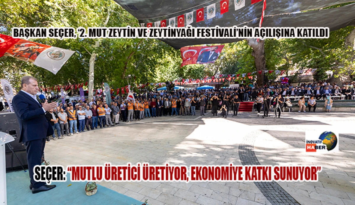 Festivalin açılış töreninde yaptığı konuşmada, Mutluların üretimden bir an olsun geri durmadığını söyleyen Başkan Seçer, “Mutlu üretici üretiyor, ekonomiye katkı sunuyor. Çocukları Ulu Önder Gazi Mustafa Kemal Atatürk’ün yolunda okusunlar, büyük insan olsunlar, ülkesine, milletine, insanlığa yararlı insanlar olsunlar diye, emek ediyor. Ekmeğini taştan, topraktan çıkarıyor” diye konuştu.