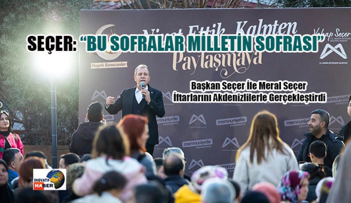 Türkiye Belediyeler Birliği (TBB) Başkan Vekili ve Mersin Büyükşehir Belediye Başkanı Vahap Seçer ile Meral Seçer, Ramazan ayının 13. gününde Akdenizlilerle iftar sofrasının bereketini paylaştı. Aynı sofrada buluşan binlerce vatandaş, ezanın okunmasının ardından orucunu açarak, Ramazan’ın manevi atmosferinde kardeşliğin ve dayanışmanın en güzel örneklerinden birini sergiledi.