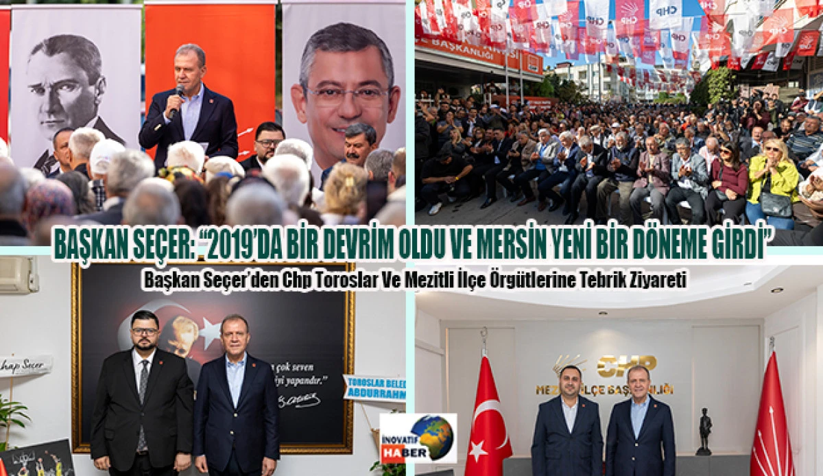 CHP Toroslar İlçe Başkanı İzzet Kırılmaz ve yönetimini ziyaretinde yaptığı konuşmasında, Mersin’in 2019 yılından sonra yeni bir döneme girdiğini ve Mersin’in tamamında CHP’nin hizmet üretme fırsatı yakaladığını vurgulayan Seçer, Bütünşehir Yasası sonrası Mersin’in tüm kırsal alanlarının CHP’li belediyecilik anlayışıyla yönetildiğini belirtti. Aynı dönemde İstanbul, Ankara, İzmir, Muğla gibi toplam 11 Büyükşehir’de de CHP’li başkanların görev aldığını, bu bölgelerin Türkiye nüfusunun büyük kısmını ve ekonominin çoğunu temsil ettiğini söyleyerek, bunun CHP için önemli bir fırsat olduğunu ifade etti.
