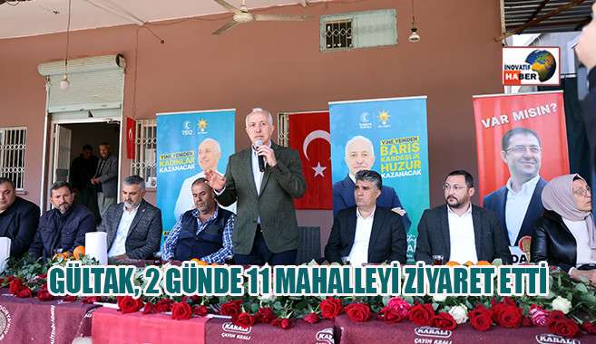 Hafta sonu gerçekleşen ziyaretlerde Başkan Gültak; Mithat Paşa, Camili, Civanyaylağı, Bekirde, Dikilitaş, Iğdır, Yeşilova, Hebilli, Akdam, Kazanlı, Cumhuriyet mahallelerini ziyaret etti, vatandaşlarla bir araya geldi. AK Parti Mersin Milletvekili Alı Kıratlı, MHP Mersin Milletvekili Levent Uysal, Cumhur İttifakı Mersin Büyükşehir Belediye Başkan Adayı Serdar Soydan, AK Parti ve MHP il ve ilçe teşkilat başkanları ile yöneticileri, başkan yardımcıları, meclis üyesi adayları ile muhtarların da katıldığı buluşmalarda vatandaşlara hitap eden Başkan Gültak, Akdeniz’de yakalanan hizmet ve yatırım temposunun devam etmesi; barış, kardeşlik ve huzur ikliminin sürmesi için 31 Mart’ta destek istedi.