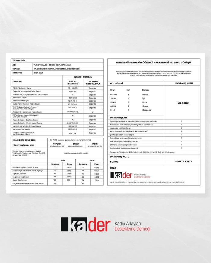 KA.DER | 2025 Kadın-Erkek Eşit Temsil Karnesini yayınladı