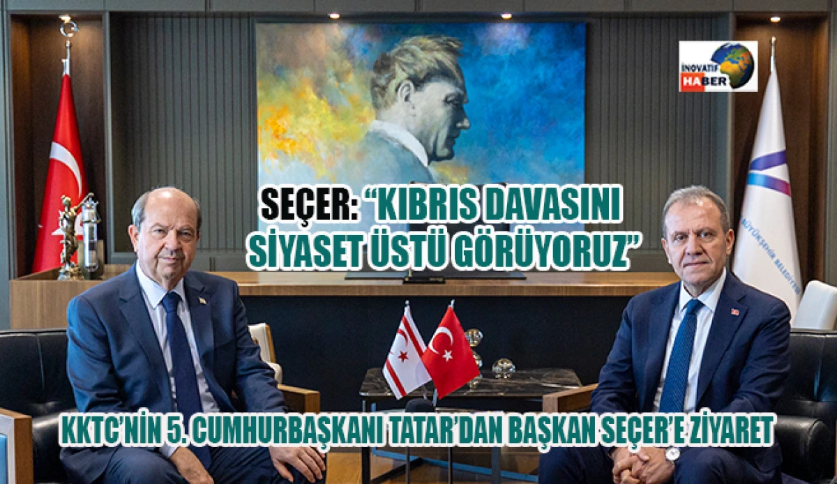 Bir dizi ziyaret için Mersin’e gelen Kuzey Kıbrıs Türk Cumhuriyeti’nin (KKTC) 5. Cumhurbaşkanı Ersin Tatar ve beraberindeki heyet, Türkiye Belediyeler Birliği (TBB) Başkan Vekili ve Mersin Büyükşehir Belediye Başkanı Vahap Seçer’i ziyaret etti.