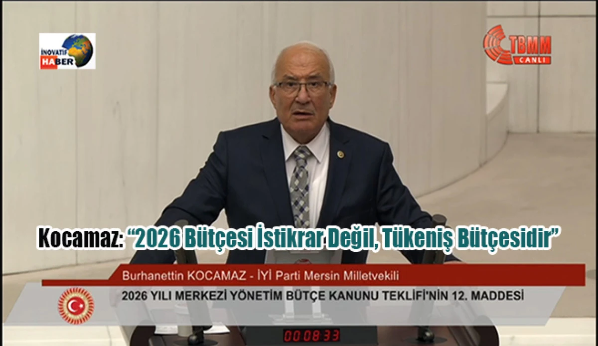 İYİ Parti Mersin Milletvekili Burhanettin Kocamaz, TBMM Genel Kurulu’nda 2026 Yılı Merkezi Yönetim Bütçe Kanunu Teklifi’nin 12’nci maddesi üzerine yaptığı konuşmada, bütçenin dar gelirliyi yok saydığını belirterek, “Bu bütçenin tek kazananı faiz lobileri ve hazine garantili müteahhitlerdir” dedi.