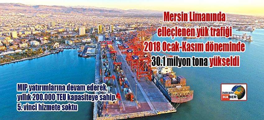 Mersin Limanında elleçlenen yük trafiği 2018 Ocak-Kasım döneminde 30.1 milyon tona yükseldi ve elleçlenen yük miktarı ile Türkiye genelindeki liman başkanlıkları içerisinde 6. sıradaki yerini korudu.