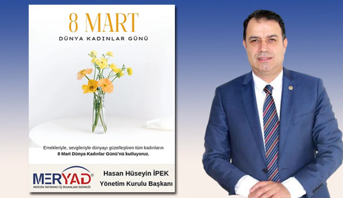 Mersin Yatırımcı İş İnsanları Derneği (MERYAD) Başkanı Hasan Hüseyin İpek yayınladığı mesajda 8 Mart Dünya Kadınlar Gününü kutladı