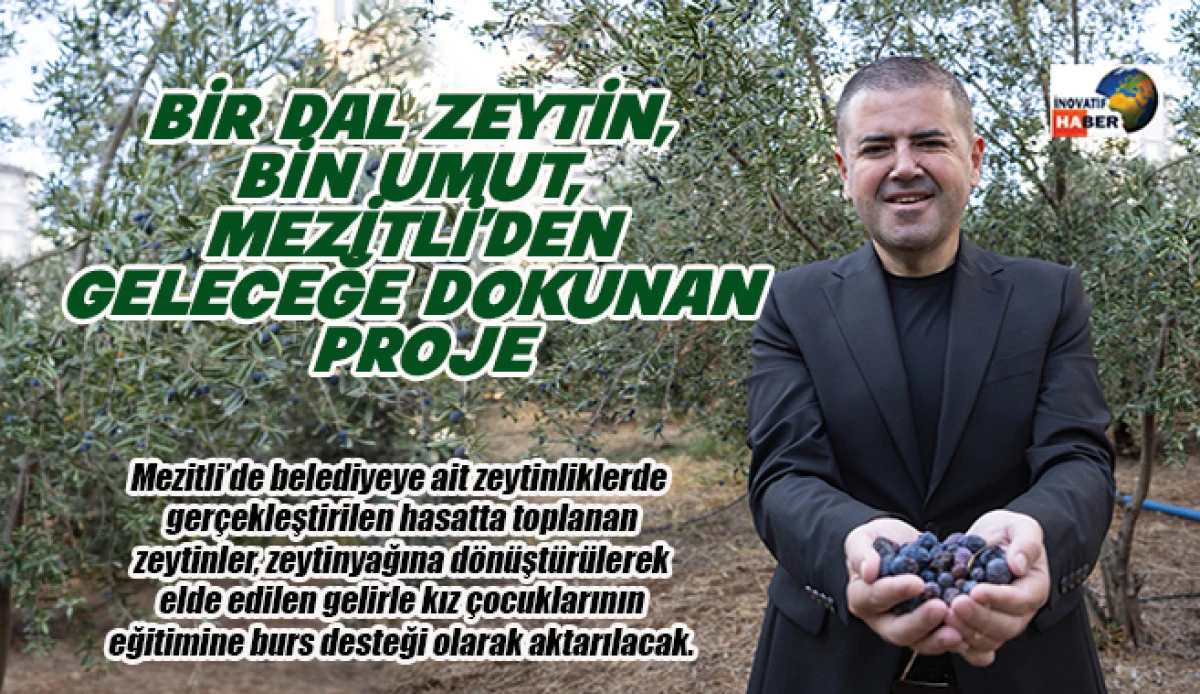 Mezitli’de belediyeye ait zeytinliklerde gerçekleştirilen hasatta toplanan zeytinler, zeytinyağına dönüştürülerek elde edilen gelirle kız çocuklarının eğitimine burs desteği olarak aktarılacak.