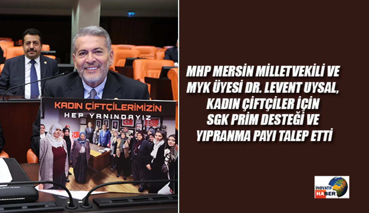 Milliyetçi Hareket Partisi Mersin Milletvekili ve MYK Üyesi Dr. Levent Uysal, TBMM Genel Kurulu’nda yaptığı konuşmada hem Mersin’e yönelik önemli kültürel ve tarımsal destekler için ilgili bakanlıklara teşekkür etti hem de kadın çiftçilere SGK prim desteği ile yıpranma payı verilmesi noktasında talepte bulundu.