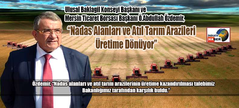 Ulusal Baklagil Konseyi Başkanı ve Mersin Ticaret Borsası Başkanı Ö.Abdullah Özdemir, uzun yıllardır her platformda dile getirdikleri nadas alanları ve atıl tarım arazilerinin üretime kazandırılması talebinin Bakanlık tarafından karşılık bulduğunu ve desteklerin hibe şeklinde verileceğini söyledi.