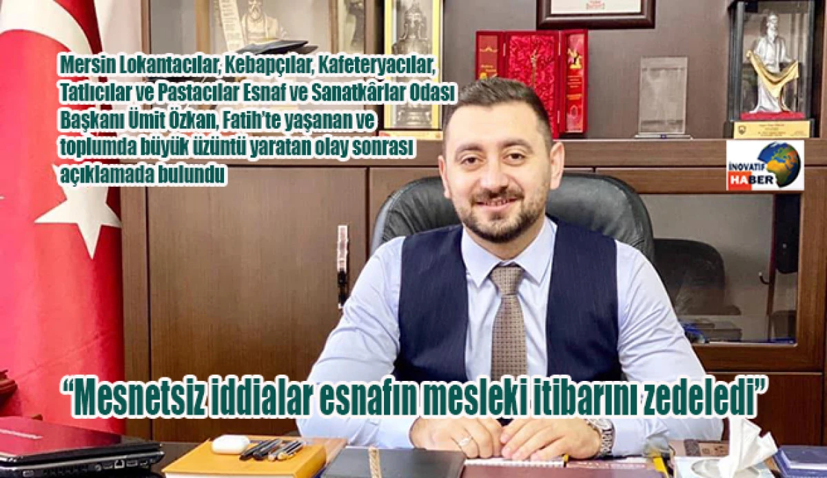 Mersin Lokantacılar, Kebapçılar, Kafeteryacılar, Tatlıcılar ve Pastacılar Esnaf ve Sanatkârlar Odası Başkanı Ümit Özkan, İstanbul’un Fatih ilçesinde bir ailenin yaşamını yitirdiği olayla ilgili kamuoyunda ortaya çıkan yanıltıcı söylemlere ilişkin önemli bir açıklamada bulundu.