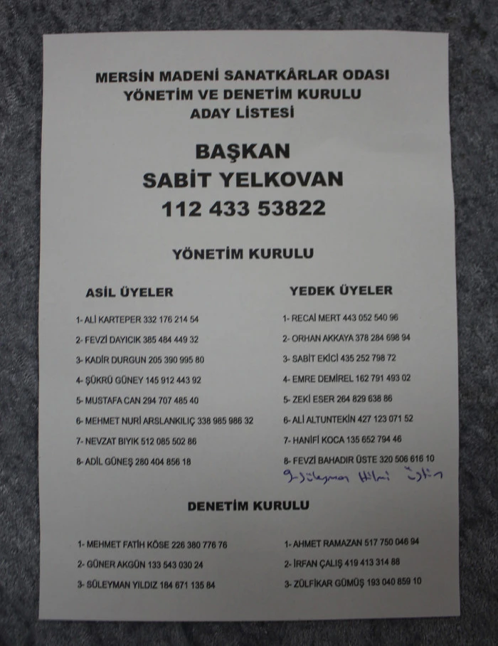 Mersin Madeni Sanatkarlar Odası Genel Kurulu gerçekleşti ve mevcut başkan Sabit Yelkovan güven tazeleyerek yeniden başkanlığa seçildi