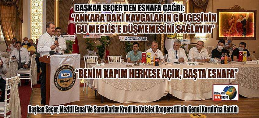 Mersin Büyükşehir Belediye Başkanı Vahap Seçer, S.S. Mezitli Esnaf ve Sanatkarlar Kredi ve Kefalet Kooperatifi’nin Olağan Genel Kurul Toplantısı’na katıldı. Başkan Seçer, yeni dönemde görev alacak yönetime başarılar dilerken, “Benim kapım herkese açık. Başta esnafa” dedi.