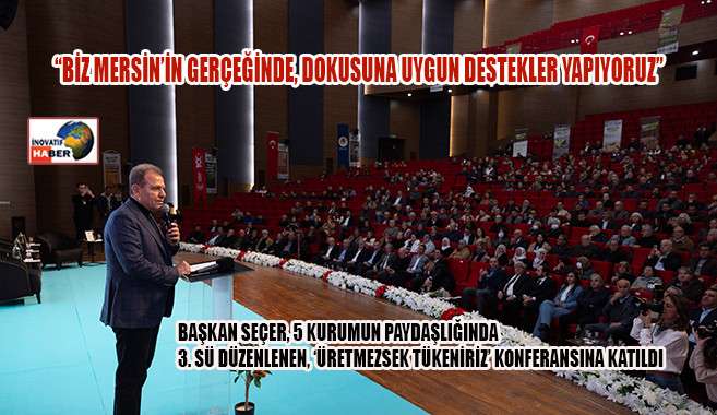 Mersin Büyükşehir Belediye Başkanı Vahap Seçer, Mersin Büyükşehir Belediyesi, Mersin Ticaret ve Sanayi Odası (MTSO), Akdeniz İhracatçılar Birliği (AKİB), Türkiye Ziraat Odaları Birliği (TZOB) ve TMMOB Ziraat Mühendisleri Odası Mersin Şubesi işbirliğinde; ‘Üretmezsek Tükeniriz’ başlığıyla bu yıl 3.’sü düzenlenen ‘Küresel İklim Değişikliği Sürecinde Tarımsal Planlama Konferansı’na katıldı. Konferansta; alanında uzman isimler ile küresel ısınmadan en çok etkilenen iller arasında olan tarım kenti Mersin için alınacak önlemler ve yapılacak projeler hakkında konuşuldu.