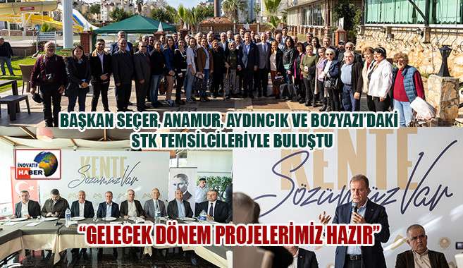 Mersin Büyükşehir Belediye Başkanı Vahap Seçer, ‘Kent Katılımı Buluşmaları’ buluşmaları kapsamında Anamur, Aydıncık ve Bozyazı’da faaliyet gösteren oda, dernek ve sendikaların temsilcileriyle bir araya geldi. Toplantıda Başkan Seçer, 5 yıl boyunca yapılan hizmetler ile önümüzdeki 5 yıllık süreçte yapılacak çalışmalar hakkında katılımcılara bilgi verdi. Toplantıda STK temsilcileri talep ve sorularını Seçer’e yöneltirken, Büyükşehir’in hizmetleri dolayısıyla da teşekkür etti