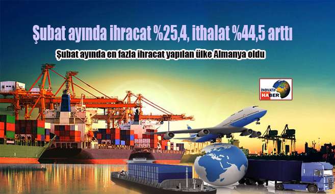 Şubat ayında ihracat %25,4, ithalat %44,5 arttı