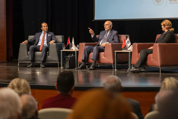 Programın sonunda Başkan Özyiğit, Prof. Dr. Ruşen Keleş'e ve moderatörler Dr. Sibel Gazi ile Dr. Yakup Şahin'e plaket ve çiçek takdiminde bulundu.