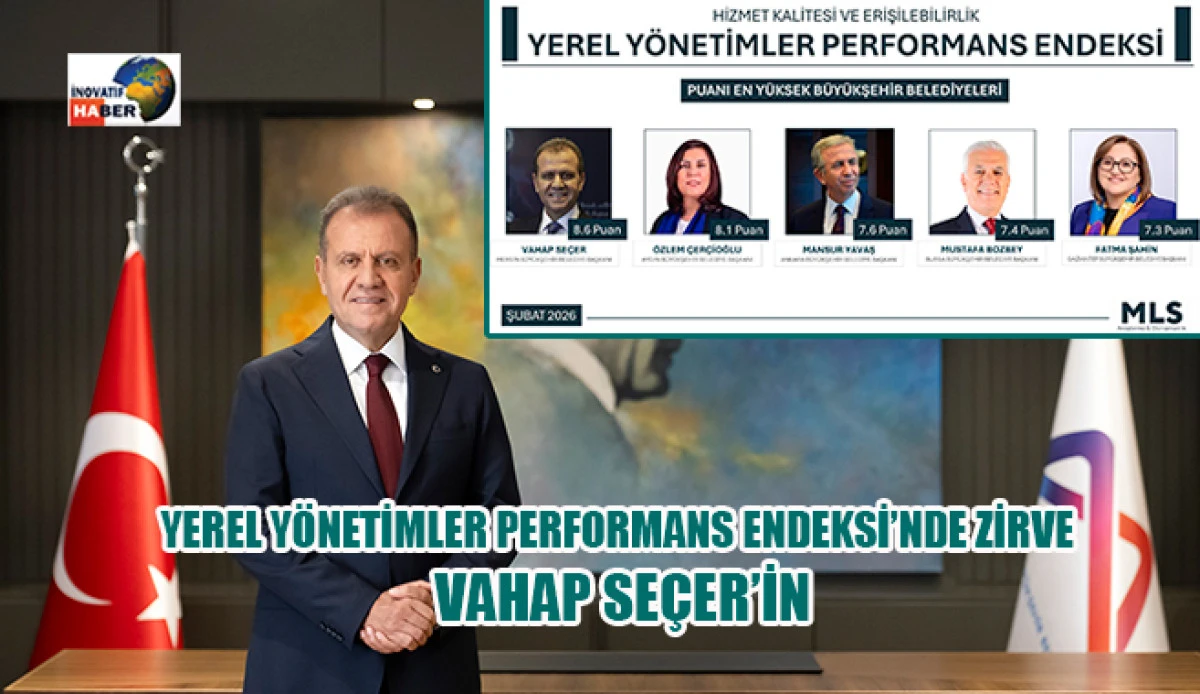 MLS Araştırma tarafından ‘Hizmet Kalitesi’ ve ‘Erişilebilirlik’ kriterleri esas alınarak hazırlanan ‘Yerel Yönetimler Performans Endeksi’ açıklandı. Sonuçlara göre 8,6 puan alan TBB Başkan Vekili ve Mersin Büyükşehir Belediye Başkanı Vahap Seçer zirvede yer aldı. Yurttaşların Mersin Büyükşehir Belediyesi hizmetlerinden duydukları memnuniyet ve bu hizmetlere eşit ve kolay erişim imkânı, Seçer’in ankette birinci sırada yer almasında belirleyici oldu.