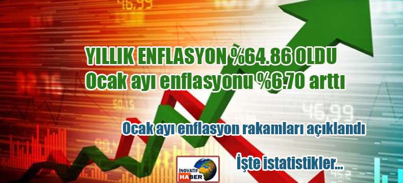 Yıllık enflasyon yüzde 64.86, ocak ayı enflasyonu yüzde 6.70 oldu