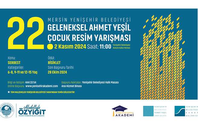 Türkiye’nin en prestijli çocuk resim yarışmaları arasında gösterilen Yenişehir Belediyesi 22. Geleneksel Ahmet Yeşil Çocuk Resim Yarışması bu yıl da çocukların sanatsal gelişimlerine destek verecek. Yenişehir Belediye Başkanı Abdullah Özyiğit, çocukları yarışmaya katılmaya davet ederek, bu tür sanatsal etkinliklerin, çocukların hayal güçlerini ve yaratıcılıklarını geliştirmenin yanı sıra onları sanatla buluşturduğunu vurguladı.